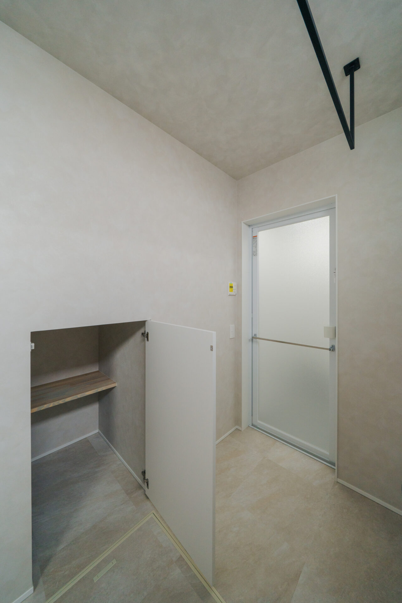 玄関を抜けると約24帖のLDKが広がり、空間がゆるやかにつながることで、家族の気配を自然に感じられる。