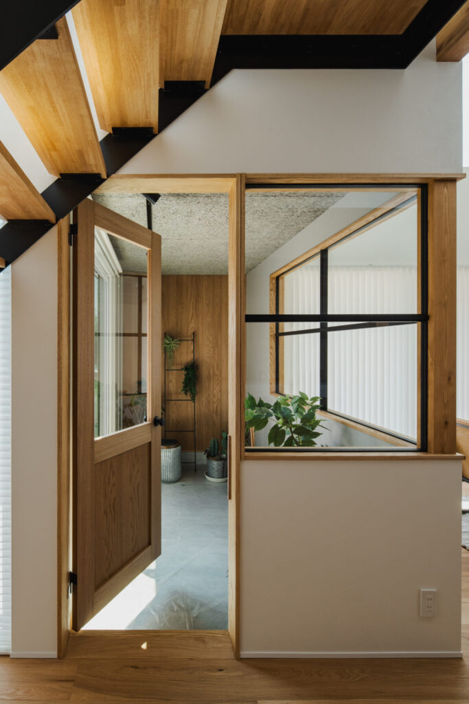 お家の中心にはご主人の趣味である観葉植物のためのプランタースペースを設け、暮らしの中に自然の潤いを取り込んでいる。