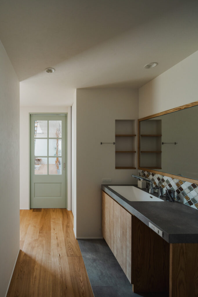 脱衣室には乾太くんを設置し、日々の家事をしっかり支える間取りとした。